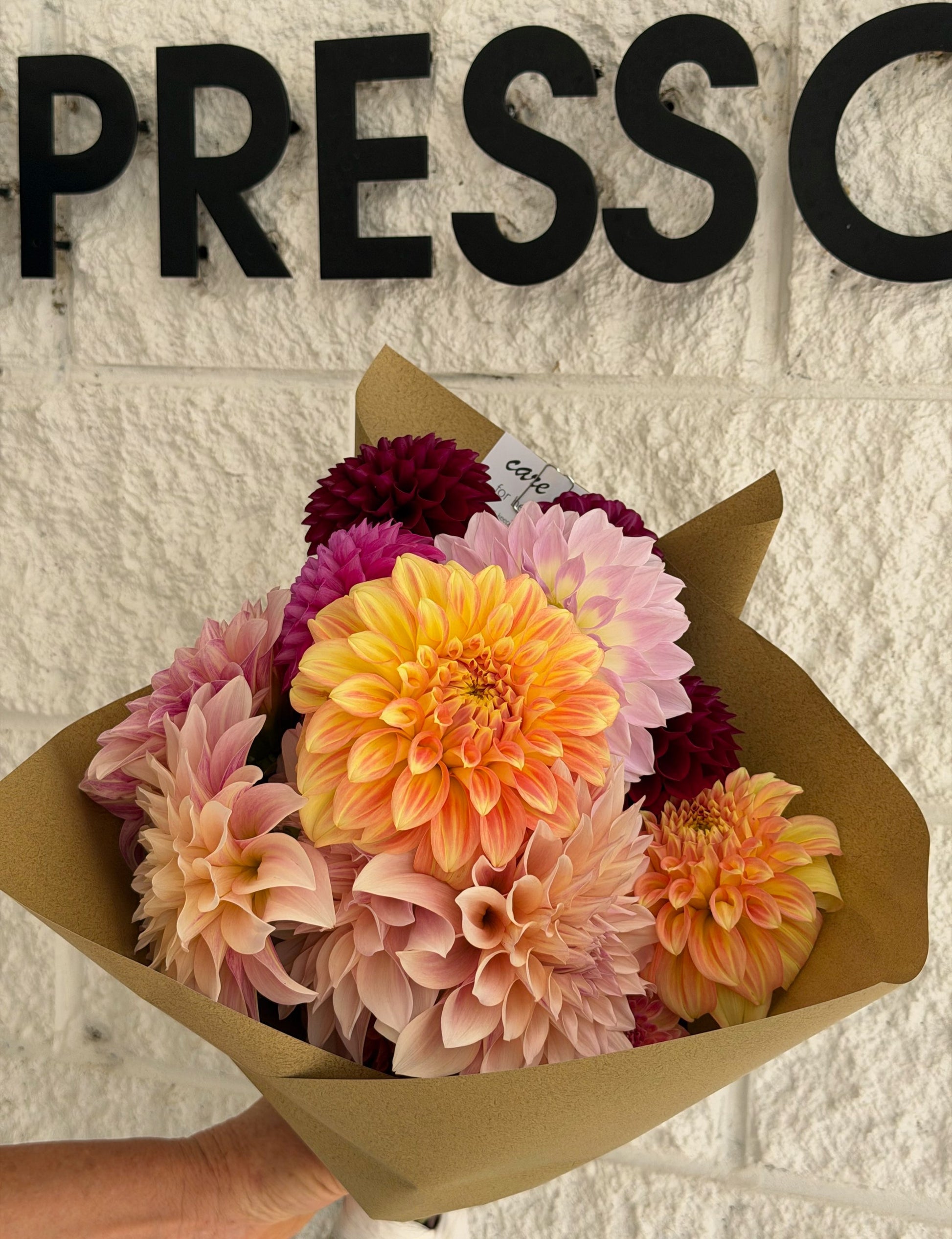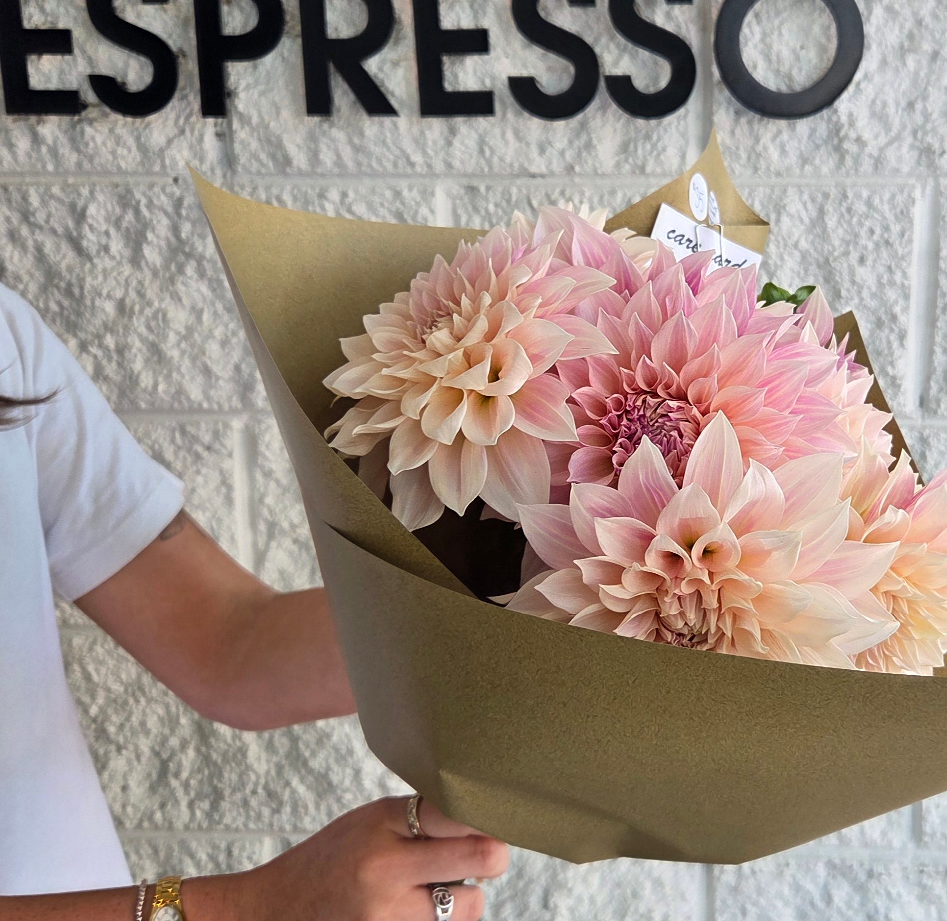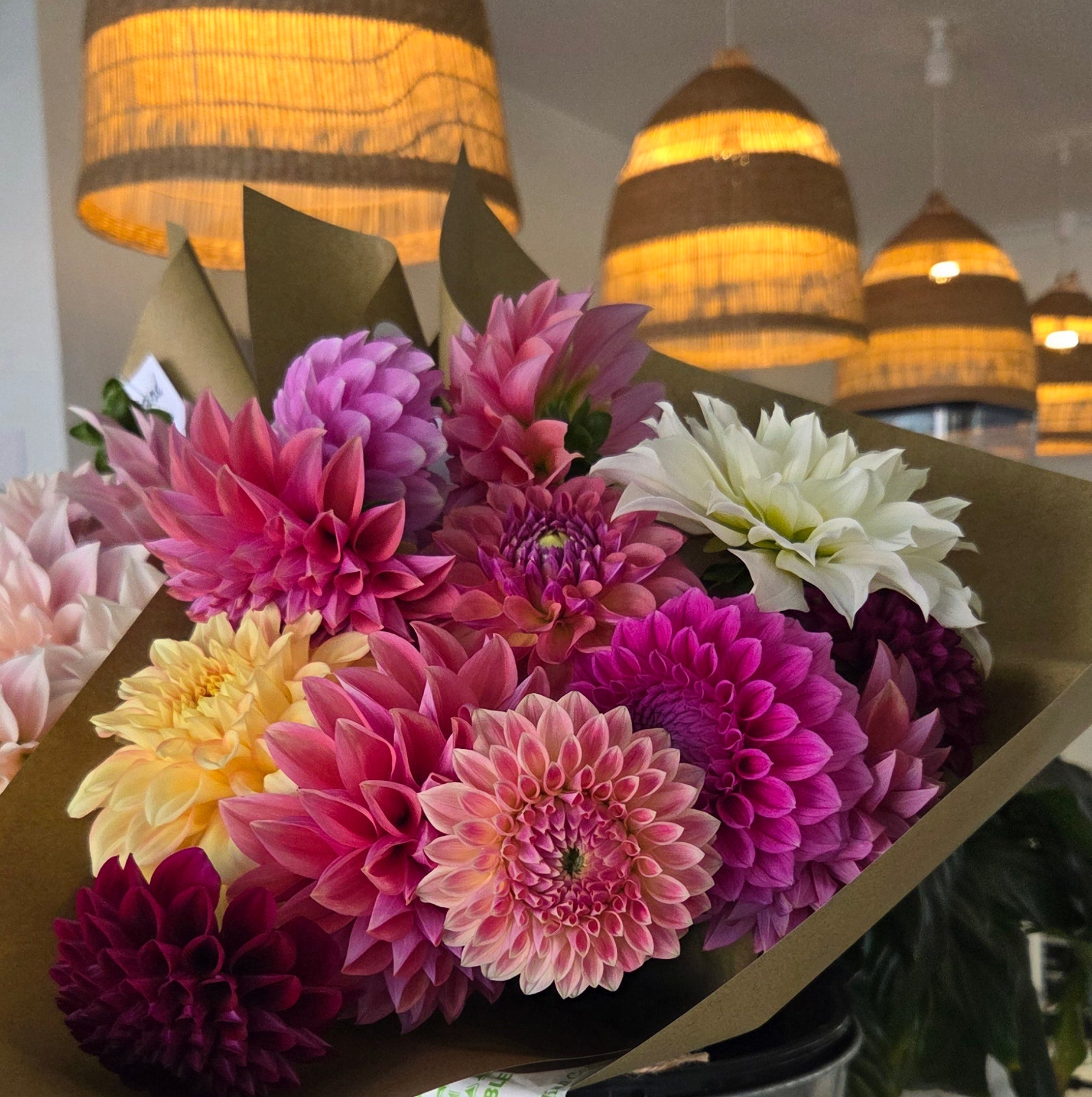 Grown right here in postcode 2486 using organic and regenerative farming practices, these dahlias are harvested by hand early in the morning and sold just hours later in our self-serve stand.